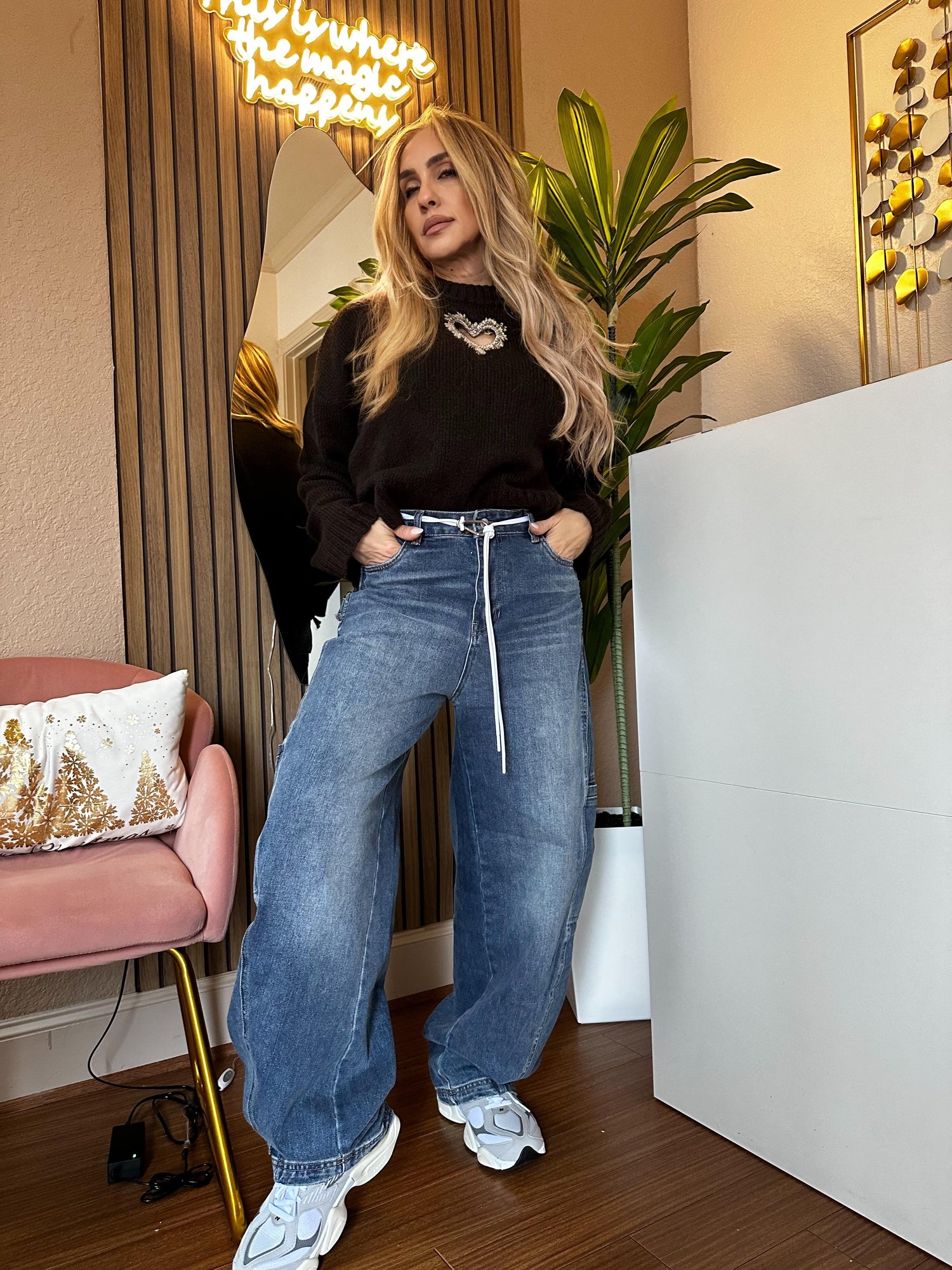 Be my Valentine Pink Set Jean Pants and Heart Top Denim Rhinestones Embellished Cute
