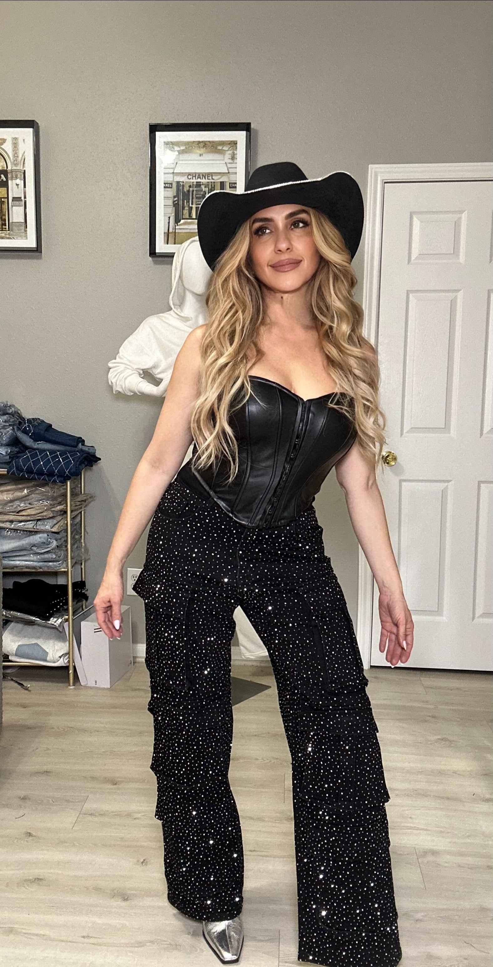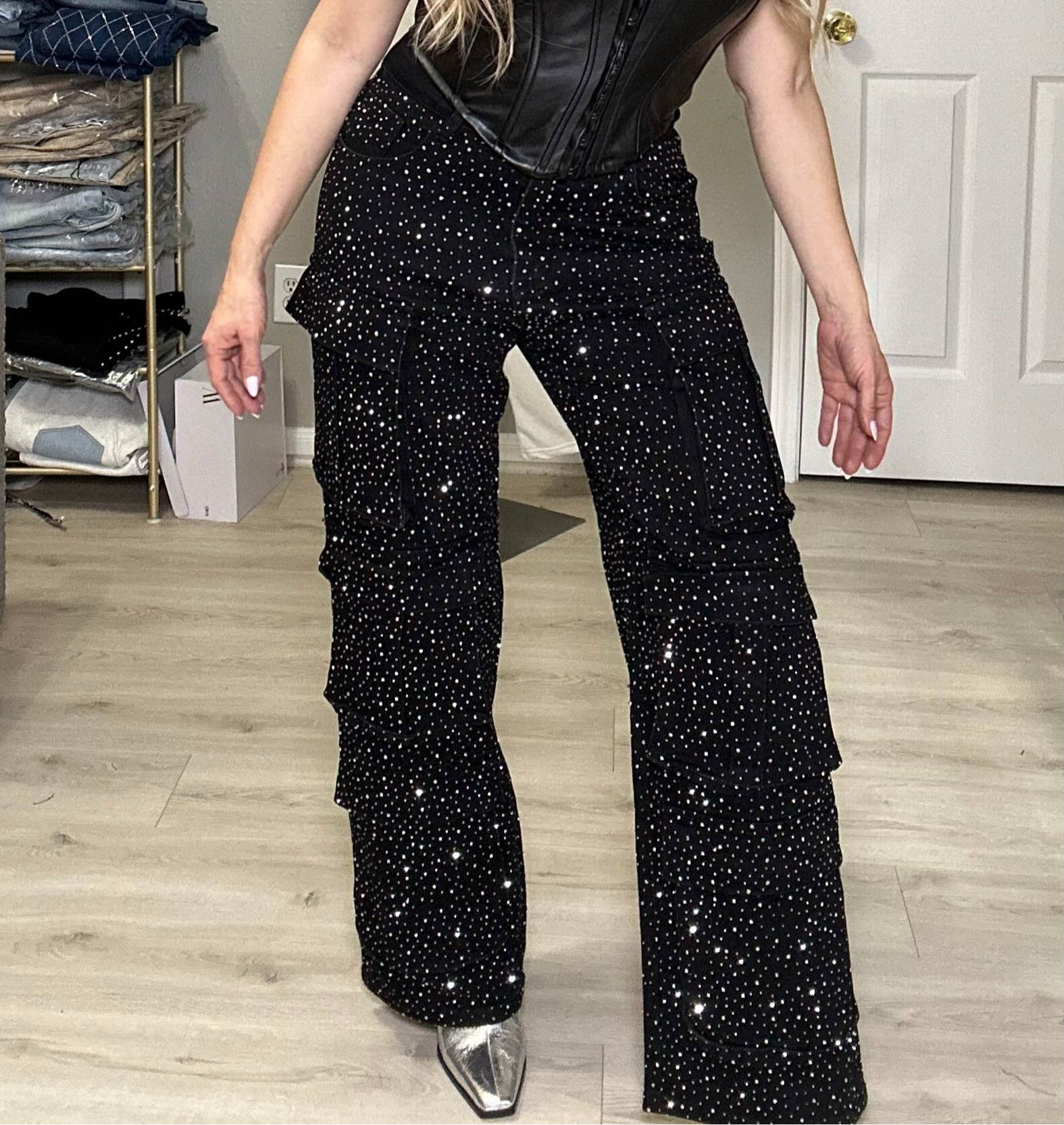 Crystal Cargo Pants with Rhinestones Statement Pants