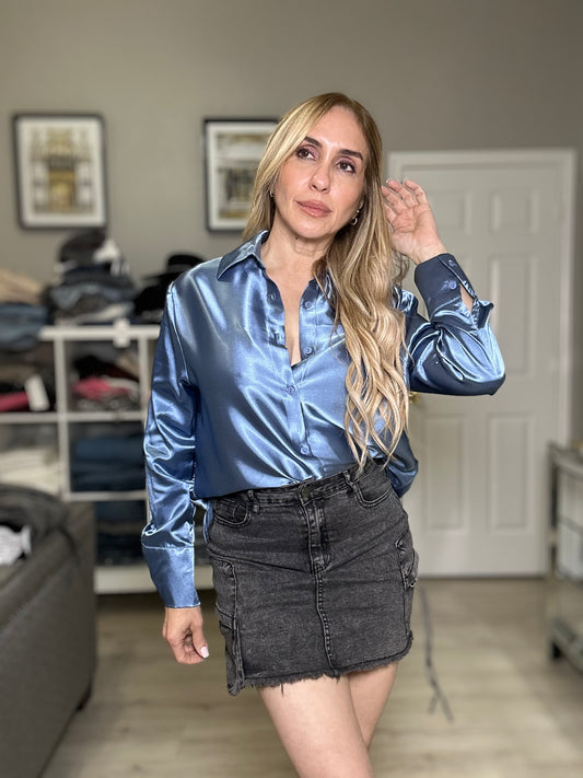 Sold outKara Blue Satin Shirt Elegant