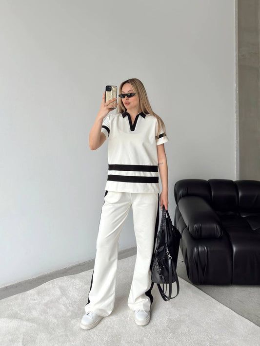 Rania Two Piece Set White with Stripes Cotton Pants + Top